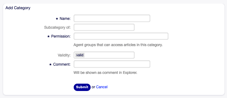- Set the validity of this resource. Each resource can be used in OTOBO only, if this field is set to valid. Setting this field to invalid or invalid-temporarily will disable the use of the resource.
