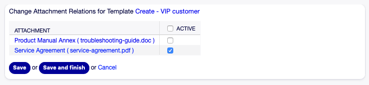 OTOBO empowers you to manage this providing you an overview to manage the 1:n relationships and quickly identify the templates using your attachments.